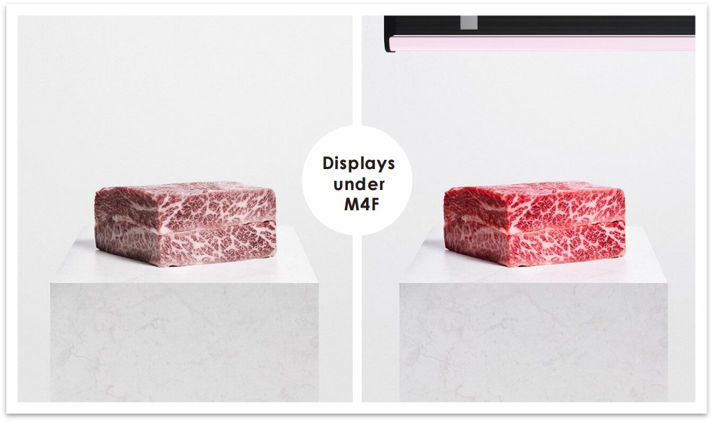 2.DieSchwarzes Licht M4F Frisches LichtMit 4000K+6500K+rot 660 nm mit PC -Abdeckung zeigt Fisch und Rindfleisch viel frischer und saftiger.