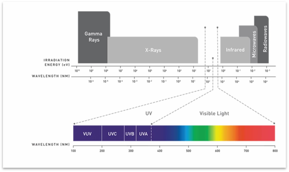 Ultraviolette Strahlung ist eine Art elektromagnetische Strahlung mit wellenförmigen Wellenlängen als die des unsichtbaren Lichts, aber länger als Röntgenstrahlen. Es ist für das menschliche Auge unsichtbar.