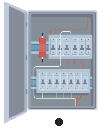 1.Das Feuerlöschgerät in den Verteilerkasten einbauen.